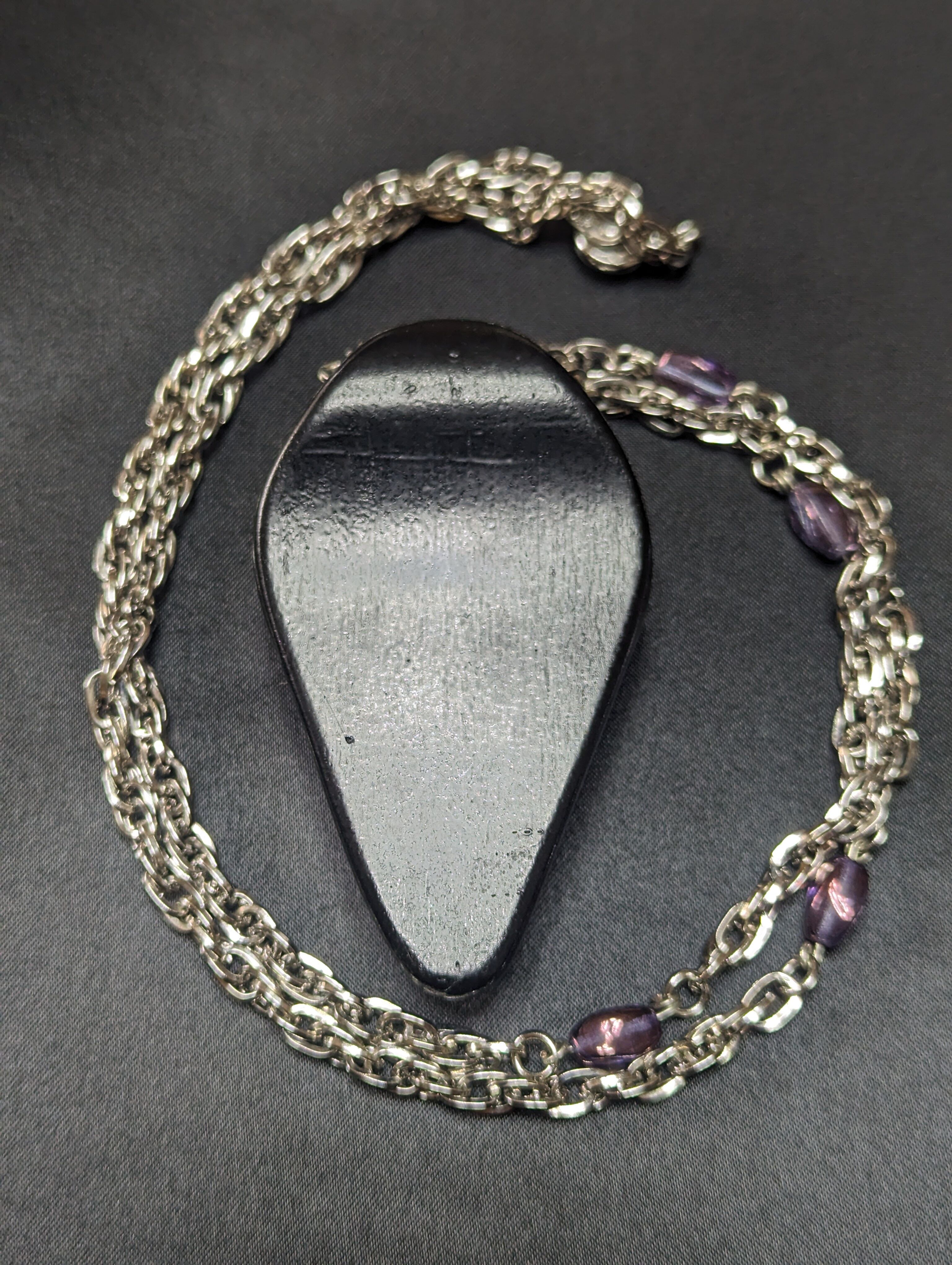 チェーン:62cm(鉄製チェーン、ガラスビーズ、コパーワイヤー、真鍮製ニューホック、メッキ加工)